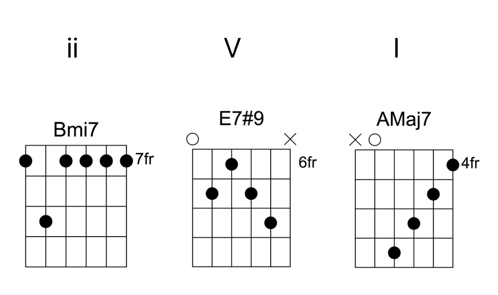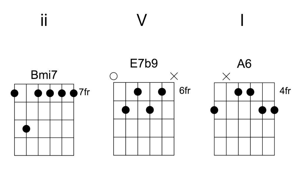 Here’s a standard (non-altered) ii V I chord progression in the key of A Major: