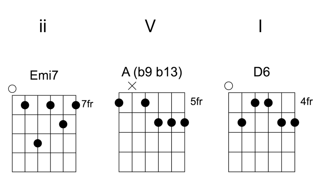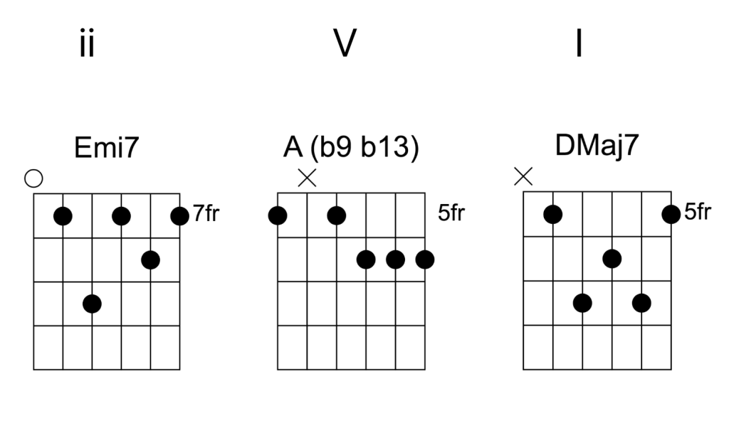 Here’s a standard (non-altered) ii V I chord progression in the key of D Major: